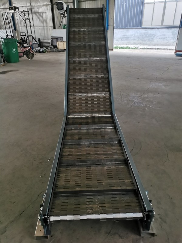 Este transportador é amplamente utilizado na garrafa de bebidas, latas de alumínio, medicamentos, cosméticos, indústrias de alimentos como transporte, pode ser feito em diferentes transportadores através de diferentes correia de malha,incluindo: em caixas de cerveja, legumes desidratados, conservas, baterias, pneus, legumes, produtos aquáticos, frutas, lanches, embalagens de carne, frutas, carnes, transportadores de carne, etc.